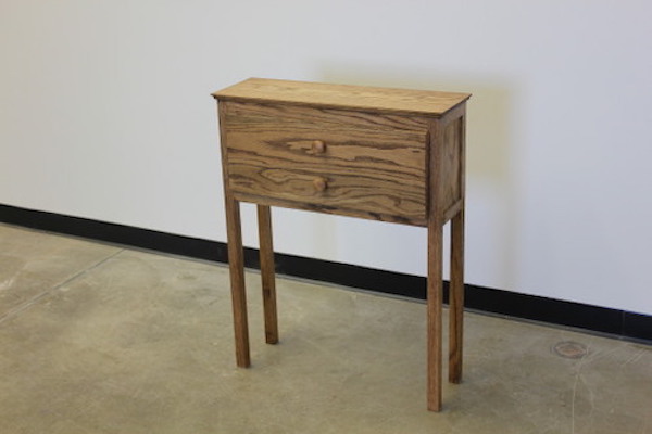 Interactive wood sculpture- The dresser was created to be too wide to open in